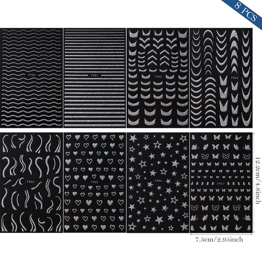 450Pcs French Tips Nail Stickers, 8 Sheets Self-Adhesive Classic Silver Matte Designs, French Manicure Nail Decals for Women Girls Beginners