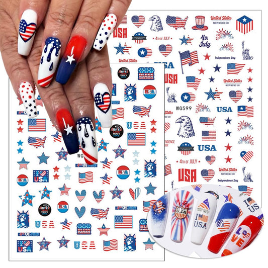 4th of July Nails Stickers for Nail Art - 8 Sheets 3D Self Adhesive Independence Day Nail Art Stickers American Flag Stars Letters USA Nail Decals Fourth of July Design Sticker for Women