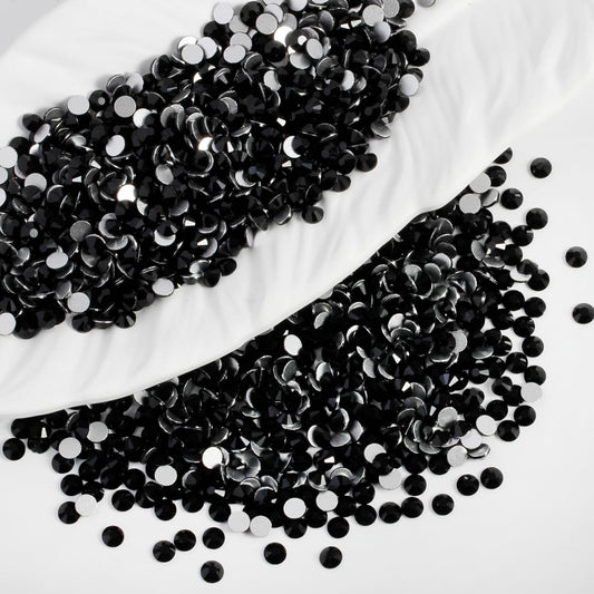 5000PCS SS6 Flatback Rhinestones | 12-Facet Diamond-Cut Glass Gems for Nail Art, Clothing, DIY Crafts |Glue-On Decoration Stones with Silver Backing(Jet Black)