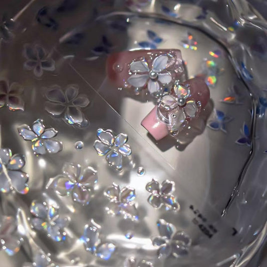 5D Embossed Flower Nail Stickers for Nail Art Quatrefoil Nail Art Stickers Spring Nail Decals Self Adhesive wiyh Design Nail Charm for Women Manicure Supplies Accessories