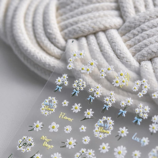 5D Embossed Flower Nail Stickers Spring Floral Nail Art Stickers Daisy Nail Decals Cute Stickers for Nails Designs Self Adhesive Nail Art Supplies & Decorations for Women Girls 1 Sheet