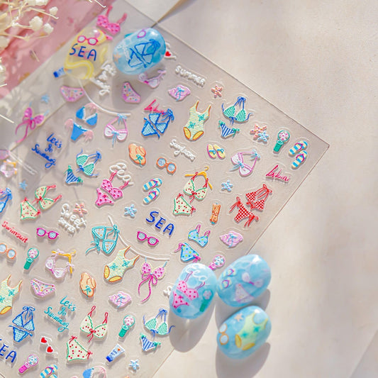 5D Embossed Flower Nail Stickers for Nail Art Summer Floral Leaf Nail Art Stickers Self-Adhesive Cute Nail Decals Supplies Design Sticker(1, Colorful Flower)