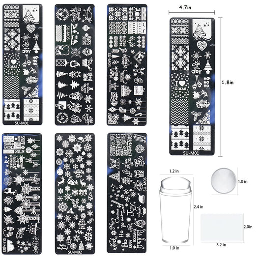 6 Pcs Xmas Christmas Snowflake Nail Stamper Kit with 1 Stamper 1 Scraper, DIY Nail Art Stencil Plates Set