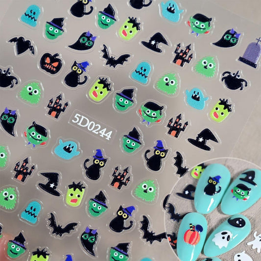 6 Sheets Halloween Nail Stickers 5D Self Adhesive Bat Skull Pumpkin Spider Designs Cute Ghost Nail Art Stickers Halloween DIY Manicure Charms for Holiday Decoration for Women