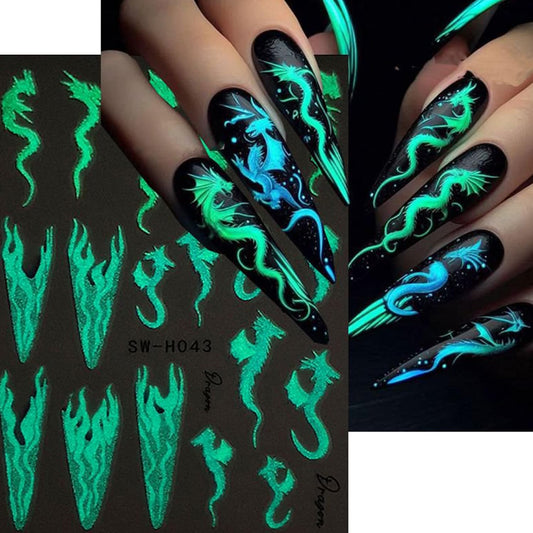 6 Sheets Halloween Nail Art Stickers 3D Self -Adhesive Luminous Skeleton Head and Hand Nail Decals Holographic Spider Web Snake Nail Stickers Halloween Nail Decoration for Women Manicure Supplies