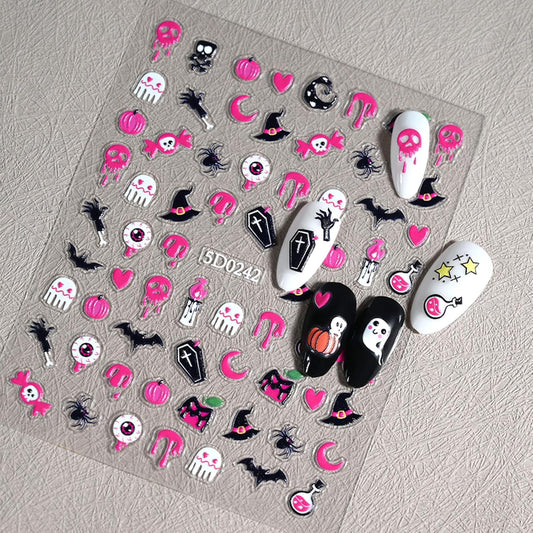6 Sheets Halloween Nail Art Stickers Pumpkin 5D Embossed Nail Decals Ghost Nail Stickers Self Adhesive Bat Skull Nail Art Supplies for Women Girls DIY Manicure Nail Art Decorations