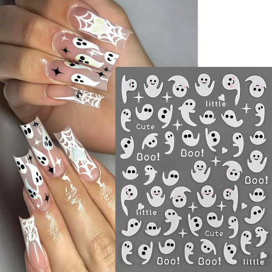 6Sheets Halloween Nail Stickers for Nail Art,3D Self-Adhesive Cute Ghost Spider Web Nail Decals Spooky Nail Art Stickers Heart Bats Spider Nails Design Manicure DIY Cute Holiday Nail Decoration Charms