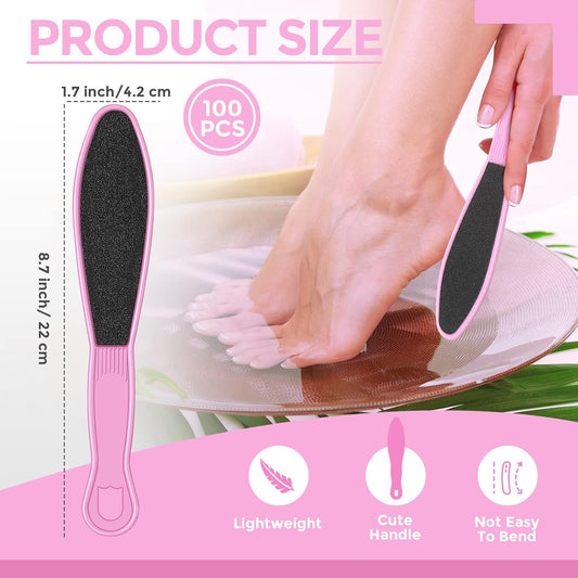 100 Pcs Pedicure Foot File Double Sided Callus Remover Sandpaper Foot Heel Rasp Tool for Dead Skin Foot Sander Foot Scraper Scrubber with Plastic Handle for Feet Spa (Pink)
