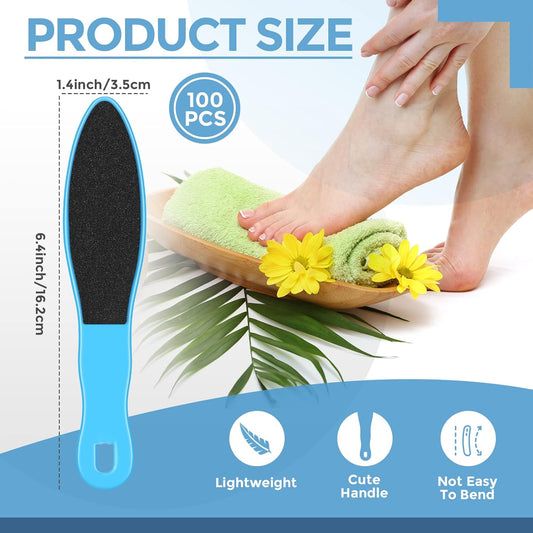 100 Pcs Pedicure Foot File Double Sided Callus Remover Sandpaper Foot Sander Scraper Scrubber with Plastic Handle Heel Rasp Tool for Feet Spa(Blue)