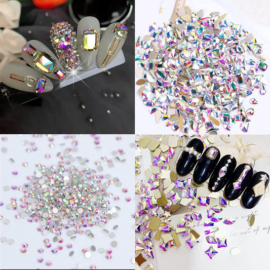7900Pcs AB Crystal Nail Rhinestones, HOINCO Nail Art Rhinestones Round Beads Flatback Glass Gems Stones, Multi Shapes Rhinestones Nail Art 3D Crystals for Nail DIY