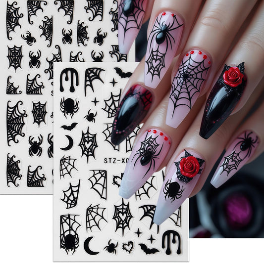 8 Sheets Spider Nail Art Stickers Halloween Nail Decals Black White Spider Web Spiders Design 3D Self-Adhesive Nail Sticker Fall Holiday Acrylic Manicure DIY Nails Decoration Supplies for Women