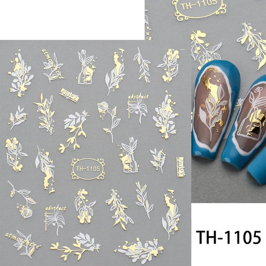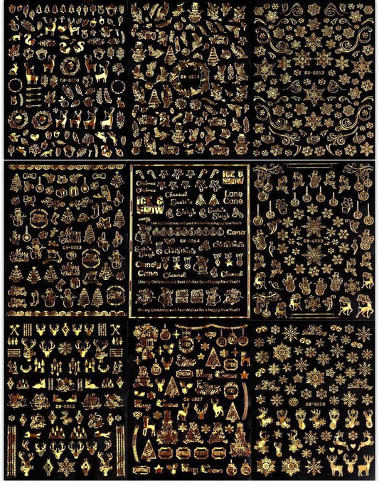 9 Sheets Christmas Nail Art Stickers Decals Self-Adhesive Pegatinas Uñas Gold White Nail Supplies Nail Art Design Decoration Accessories