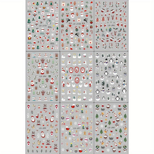 9 Sheets Christmas Nail Art Stickers Decals Self-Adhesive Pegatinas Uñas Navidad Holiday Red Xmas Snowflake Winter Nail Supplies Nail Art Design Decoration Accessories