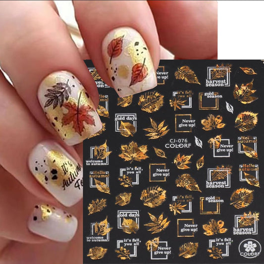9 Sheets Autumn Nail Stickers Maple Leaf Nail Decals 3D Self Adhesive Nail Art Stickers Bronzing Laser Gold Alphabet Design Fall Thanksgiving Sticker for Nail for Women Manicure Supplies