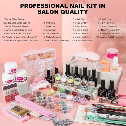 Acrylic Nail Kit for Beginners: Professional Nail Kit Set with Everything UV Light and Complete Nail Supplies Salon