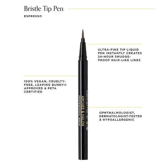 Arches and Halos Fine Bristle Tip Pen - Eyebrow Pencils for Women - Vegan Brow Pencil - Smudge-Proof, Buildable Formula - Espresso - 0.02 oz