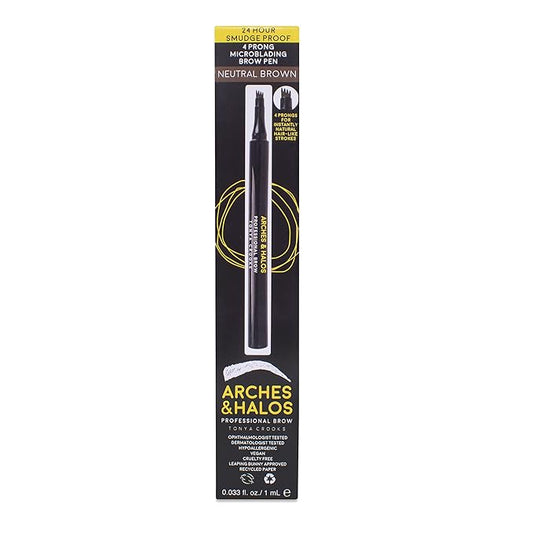 Arches & Halos Microblading Brow Shaping Pen - Fuller, More Defined Brow - Long-lasting, Smudge Resistant, Rich Color - Vegan and Cruelty Free Makeup - Neutral Brown - 0.026 oz