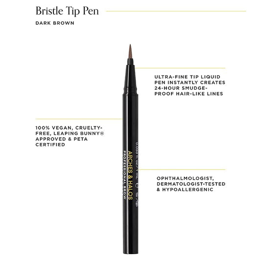 Arches and Halos Angled Bristle Tip Waterproof Brow Pen - Water Based and Smudge Proof Eyebrow Pencil - Extended Wear - Dark Brown - 0.051 oz
