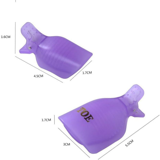 10Pcs Purple Useful Toenail Clips Nail Art Caps Soak Off UV Gel Clamp Remover Beauty Tool Sleek Nail Remover Clips With Anti-Slip Design Nail Polish Removers