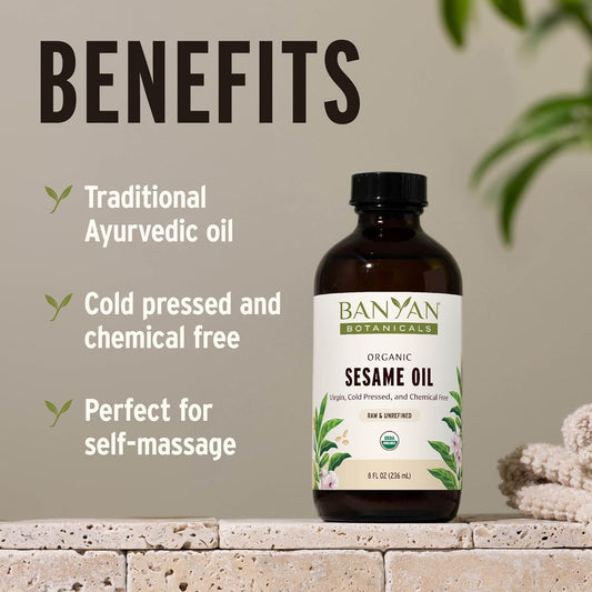 Banyan Botanicals Sesame Oil – Organic & Unrefined Sesame Oil for Skin, Body, Hair & More – Multiple Sizes – 8 oz – Non GMO Sustainably Sourced Vegan