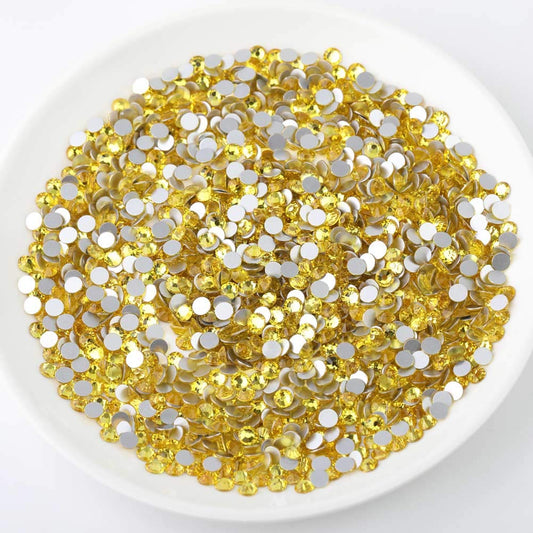 beadsland Flat Back Crystal Rhinestones Round Gems for Nail Art and Craft Glue Fix, Lemon Yellow (2.9-3.0mm) SS12/1440pcs