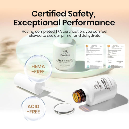 Beetles 20ml 2Pcs Nail Dehydrator and Primer, Large Capacity Acid Free Acrylic Nail Prep Dehydrate and Primer for UV Gels Superior Bonding Professional Salons Set