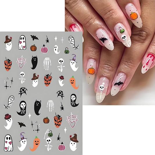 12Pcs Halloween Nail Stickers - Halloween Nail Decals - 3D Self-Adhesive Ghosts Pumpkin Spider Web Nail Design Decorations for Halloweens DIY Manicure Supplies - Nail Art Decorations Accessories