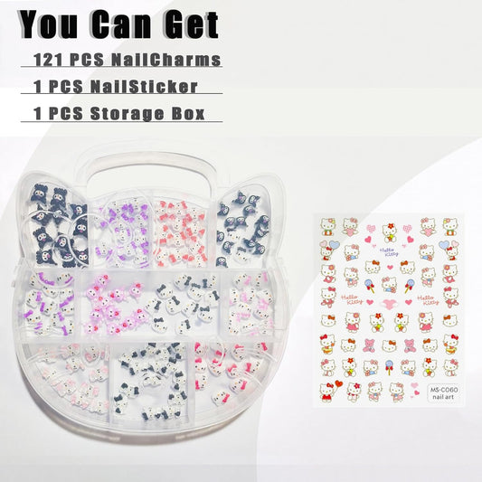 121 PCS Kitty Nail Charms Nail Art Stickers-Kawaii Nail Charms Nail Decorations for Nail Art Supplies 3D Flatback Resin Charms