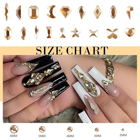 Canvalite 2900Pcs Champagne Rhinestones for Nails, 18 Styles Multi Shape Nail Charms and Gems Shiny Glass Crystal Flatback Nail Rhinestones Set for Nail Art with Rhinestone Picker and Tweezers