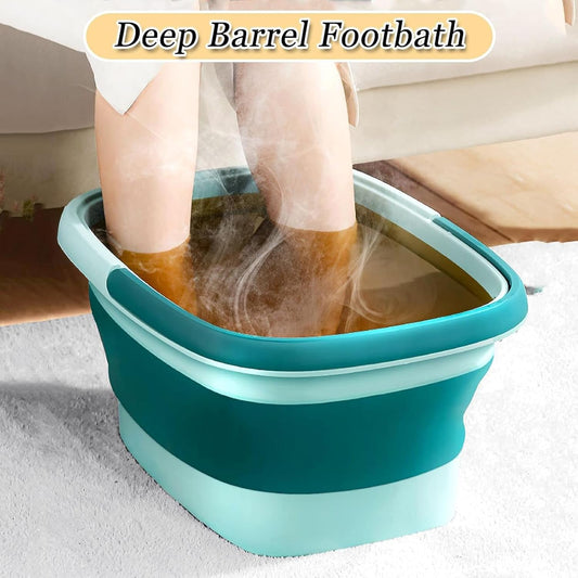 Collapsible Foot Bath Soak Tub with Handle, Plastic Foldable Feet Spa Soaking Basin Bucket with Massager Acupoint for Washing, Pedicure Foot Care Bathtub Bowl Tools for Pain Relief, Green
