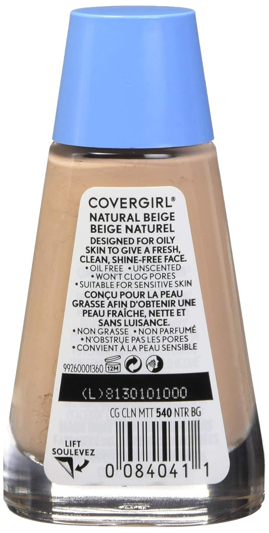 CoverGirl Clean Oil Control Liquid Makeup, Natural Beige (N) 540, 1.0 Ounce Bottle