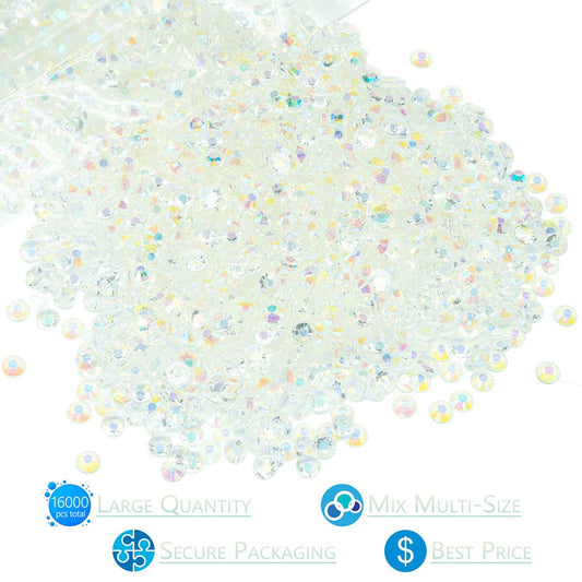 16000PCS 3mm 4mm 5mm Transparent AB Resin Rhinestones for Crafting Clear AB Flatback Jelly Stones Bulk SS10 SS16 SS20 Diamonds Gems Charms for Nails Face Eyes Makeup Tumblers Bottles DIY Crafts
