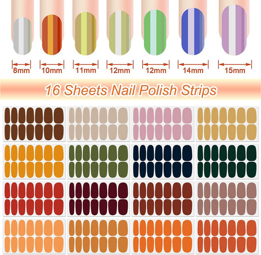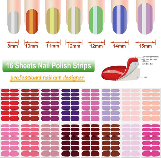 DANNEASY 16 Sheets Bright Color Nail Polish Strips Full Nail Wraps for Women Gel Nail Strips Self Adhesive Nail Polish Stickers Fingernails Manicure Accessories with Nail File, Cuticle Stick