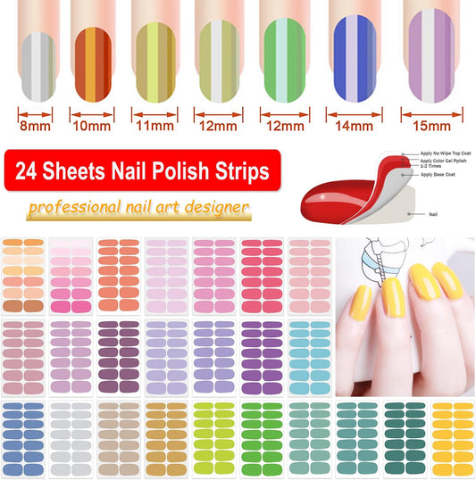 DANNEASY 24 Sheets Nail Polish Stickers - Light Color Full Nail Wraps Stick on Nail Polish Strips Gel Nail Strips Self Adhesive Manicure Fingernail Sticker Nails for Women with File, Cuticle Stick