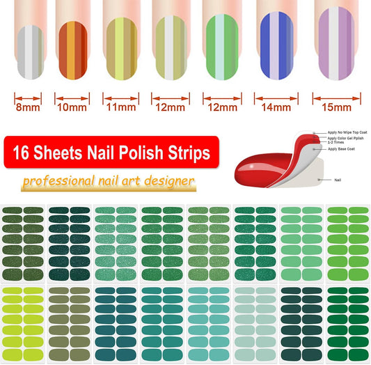 DANNEASY 16 Sheets Green Nail Wraps for Women Full Nail Polish Stickers Fresh Color Self Adhesive Nail Polish Strips Glitter Nail Strips Gel Fingernail Sticker Nails with File, Cuticle Stick