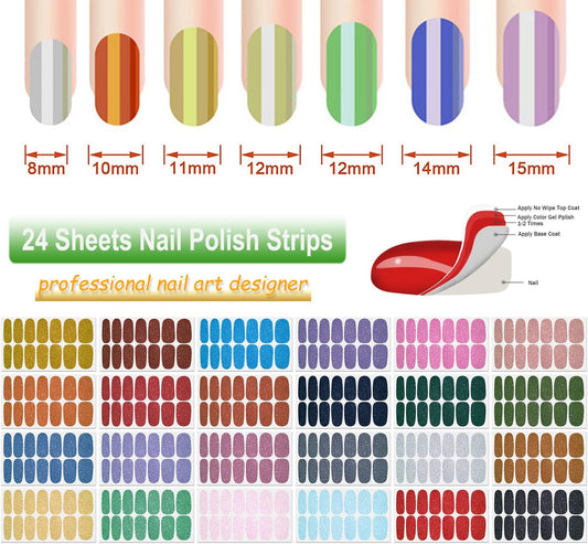 DANNEASY 24 Sheets Glitter Nail Polish Stickers Full Nail Wraps for Women Self Adhesive Nail Polish Strips Gel Nail Strips Stick on Nails Manicure Kit with Nail File, Cuticle Stick