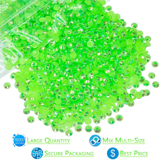 16000PCS Light Green AB Resin Rhinestones for Crafting 3mm 4mm 5mm Flatback Jelly Stones Bulk SS10 SS16 SS20 Diamonds Crystals Gems Charms for Nails Face Eyes Makeup Tumblers Bottles DIY Crafts