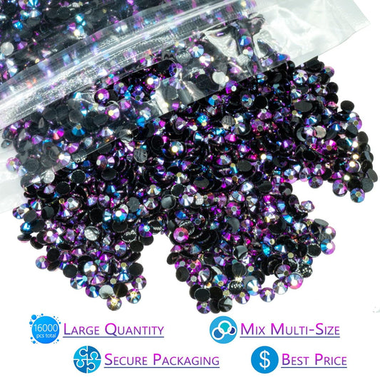 16000PCS Mystique Purple Crystal Resin Rhinestones for Crafting Dark Purple Flatback Stones 3mm 4mm 5mm Diamonds Crystals Gems for Nails Face Eyes Makeup Tumblers Bottles Crafts Clothes Shoes