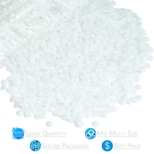 16000PCS Pure White Resin Rhinestones for Crafting 3mm 4mm 5mm Flatback Jelly Stones Bulk SS10 SS16 SS20 Non-Hotfix Diamonds Crystals Gems Charms for Nails Face Eyes Makeup Tumblers Bottles DIY Crafts