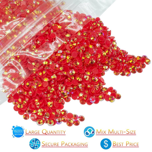 16000PCS Red AB Resin Rhinestones for Crafting 3mm 4mm 5mm Flatback Jelly Stones Bulk SS10 SS16 SS20 Diamonds Crystals Gems Charms for Face Eyes Makeup Mugs Tumblers Bottles DIY Crafts Clothes Shoes