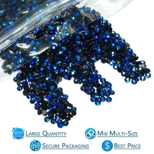 16000PCS Royal Blue AB Resin Rhinestones for Crafting 3mm 4mm 5mm Dark Blue Flatback Jelly Stones Bulk Diamonds Gems Charms for Nails Face Eyes Makeup Tumblers Bottles DIY Crafts Clothes Shoes