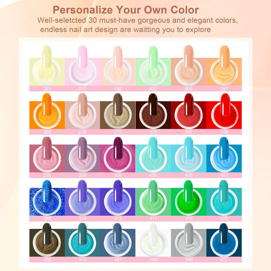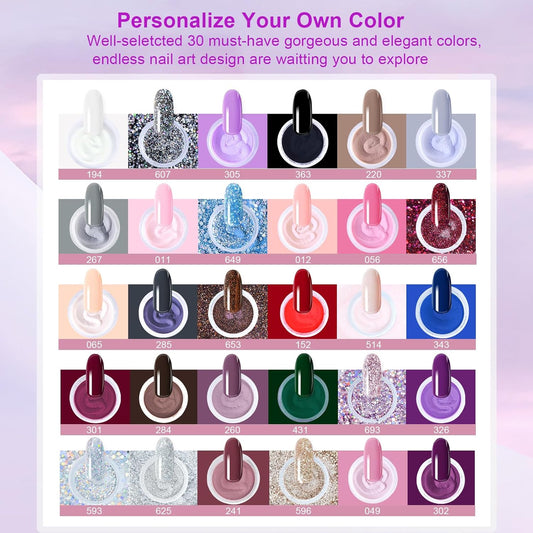 Dip Powder Nail Kit Starter, 30 Colors Dip Nails Green Red Black Brown Glitter, Bright Color Acrylic Dipping Powder Liquid Set with Base/Top Coat Activator Brush Saver for Manicure DIY Gift