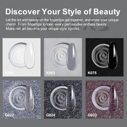 Dip Powder Nail Kit Starter, 6 Colors Glitter Dark Black White Dipping Powder Kit With Base & Top Coat/Activator/Brush Saver, Nail Art Manicure Salon DIY for Daily at Home Party Gifts for Women