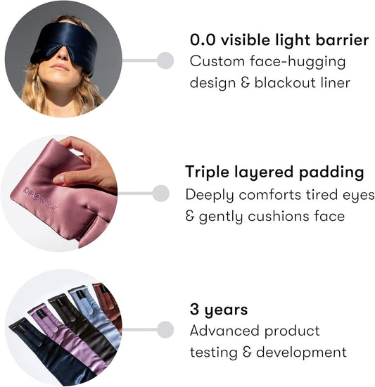 DROWSY Silk Sleep Mask. Face-Hugging, Padded Silk Cocoon for Luxury Sleep in Total Darkness. (Midnight Blue)