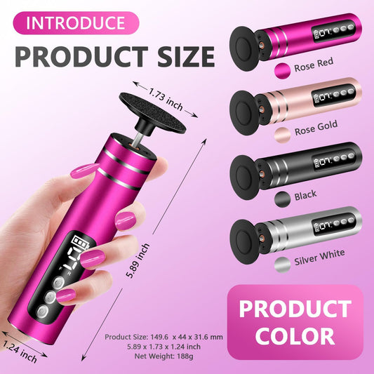 EAONE Portable Electric Foot File-Callus Remover for Feet, Professional 2 in 1 Foot/Nail Filer -Digital Display for Battery Level & 9 Speed Control-Rechargeable Pedicure Tool for Dead Skin (Rose Gold)