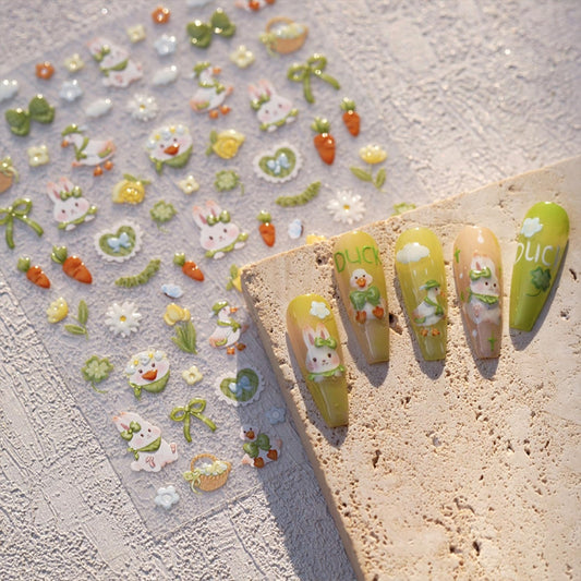 Easter Nail Art Stickers Rabbit Nail Decals Cute Cartoon Nail Stickers for Nails Art Self Adhesive 5D Embossed with Design Bow Nails Charm for Women Girls Kid DIY Manicure Supplies Decoration