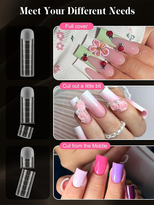 EBANKU Poly Gel Nail Forms Kit - 288PCS Reusable Dual Forms for Builder Gel, Nail Mold Kit with 2.5oz Slip Solution, Brush, File, 5PCS Clips - 12 Shapes