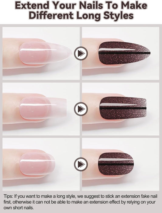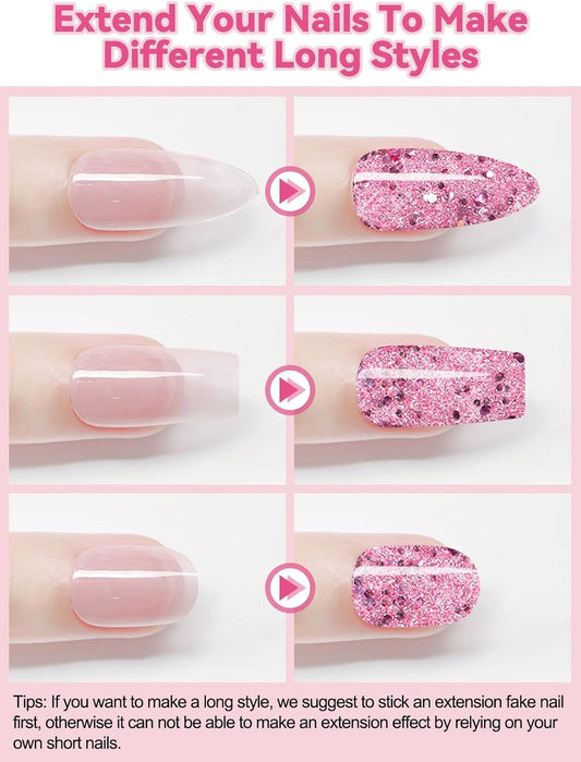 EBANKU 32PCS Semi-Cured Gel Nail Wraps Full Nail Polish Wraps Shiny Nail Decors UV/LED Lamp Required (Shiny Pink)