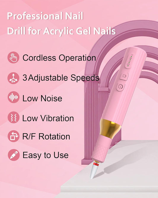 Electric Cordless Nail Drill Portable Nail Drill Machine for Gel Acrylic Nails, Rechargeable Nail File for Home Salon Electric Nail File Pink