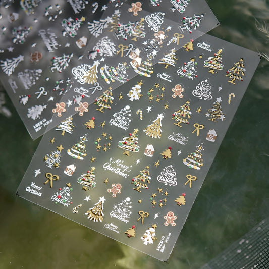 2 Sheets Christmas Nail Art Stickers 5D Embossed Nail Decals Silver Gold Star Bow Gingerbread Man Christmas Tree Nail Stickers Christmas Nail Supplies for Women Girls DIY Manicure Decorations